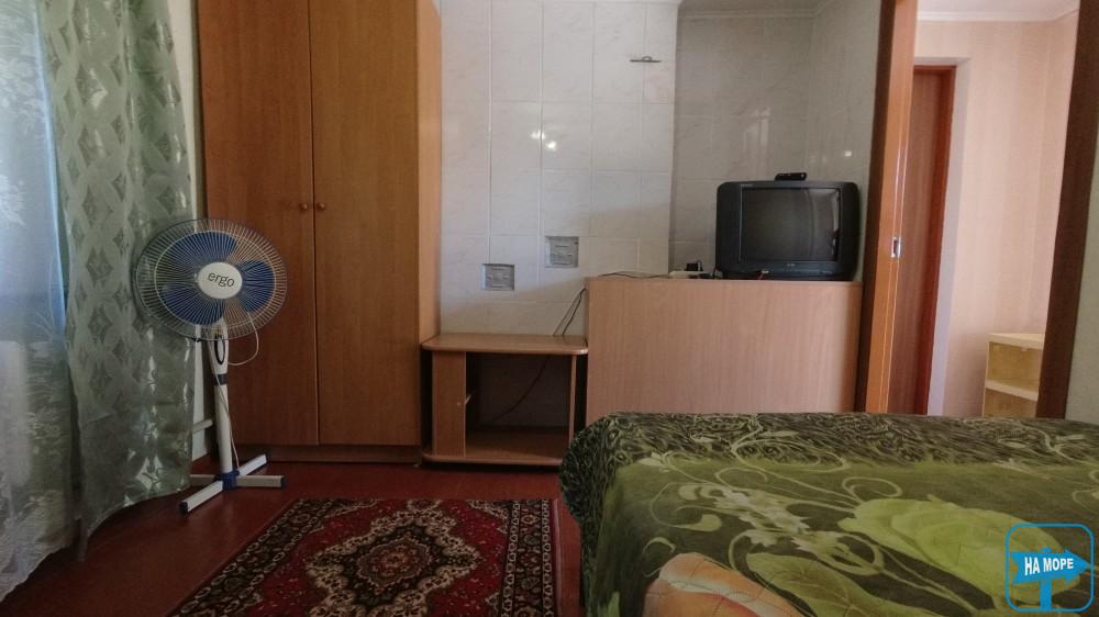 Перша кімната укомплектована двоспальним ліжком, розкладним кріслом, корпусними меблями, телевізором, вентилятором.