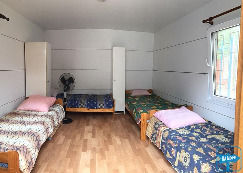 Для відпочинку вам надаються 3 огороджені окремі 4-5 місні будиночки «Стандарт» і «Напівлюкс». Великі, просторі, світлі будиночки укомплектовані меблями: шафи, тумби, столи, окремі та двоспальні ліжка. Також у будиночках холодильник, вентилятор з пультом, Wi-Fi, телевізор, електрочайник, електроплита, набір посуду, постільна білизна (рушників немає). У будиночку «Напівлюкс» вбудована кухня як окрема кімната.