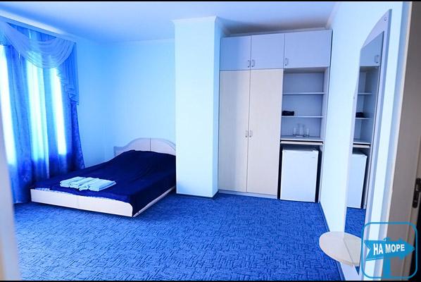 Корпус знаходиться за 100 метрів від берега, і побудований з екологічно чистого матеріалу – ракушняка, теплоізоляційні властивості якого дозволяють добре переносити спеку. У кожному номері знаходиться санвузол (душ, туалет, умивальник), спальня та вітальня. Подача гарячої та холодної води проводиться цілодобово.