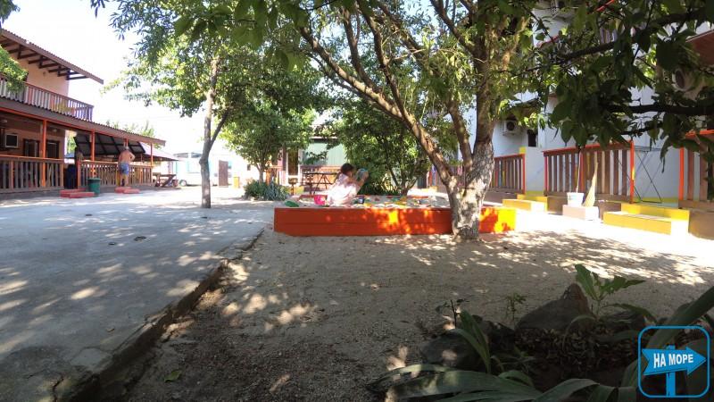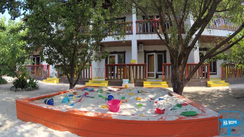 Центр селища, навпроти дельфінарію. Вся інфраструктура курорту знаходиться довкола пансіонату.
