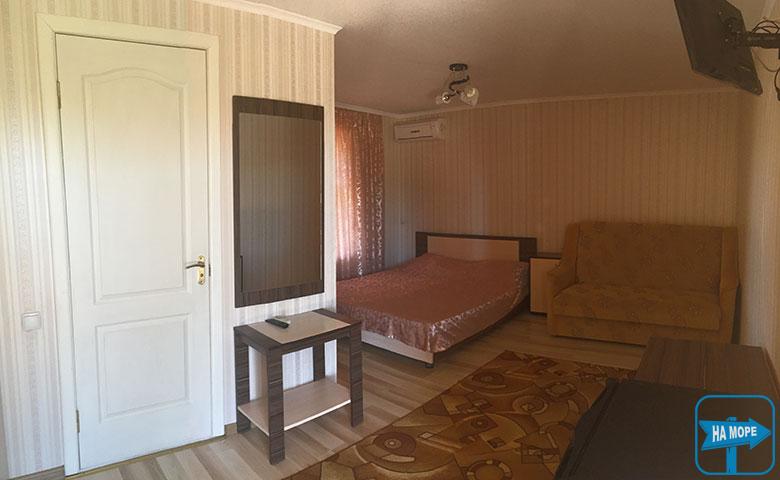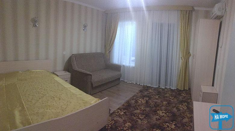 Гостям пропонується поселення у 2-х, 3-х, 4-х місних номерах. У кожному номері є душ, туалет, телевізор, холодильник. На території пансіонату є магазин, їдальня, дитячий майданчик, автостоянка. Безпосередньо біля пансіонату встановлено банкомат.
