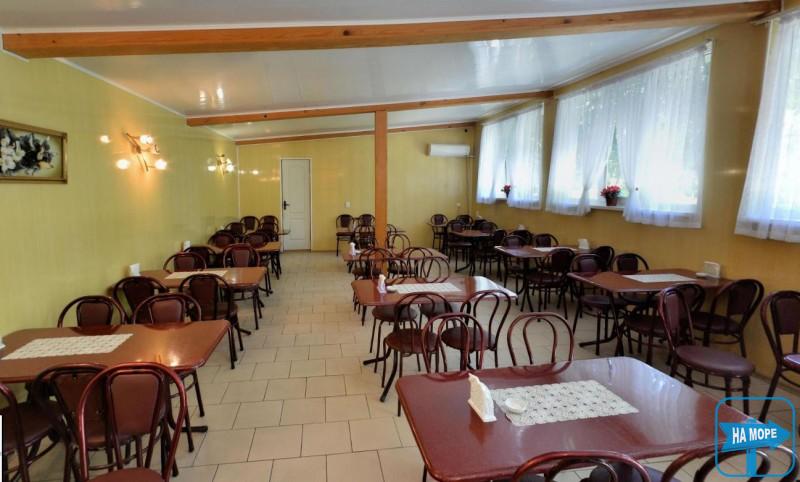 Міні-пансіонат «Азов» завжди нагодує своїх гостей комплексним триразовим харчуванням, працює кафе зі смачною домашньою кухнею. Затишна їдальня обладнана кондиціонером. Триразове домашнє харчування: 140 грн. з людини.