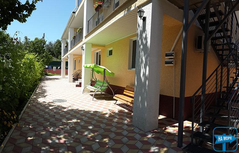 Приватний пансіонат «Меридіан» знаходиться за адресою Генічеська Гірка вулиця Азовська 11-В, в 5-ти хвилинній пішій прогулянці від пляжу, пропонує для відпочиваючих номери підвищеної комфортності розраховані на поселення 2-3-4 особи (можливе поселення та 5 осіб) . На території є альтанка для відпочинку, місце для приготування шашликів та барбекю, дитячий майданчик, гойдалка, батут-гірка. Поруч магазини – 100 метрів господарський, 150 метрів продуктовий. За 400 метрів від нас - ринок пансіонату Арабатська стрілка, на якому також знаходиться кафе, місяць парк, банкомат.