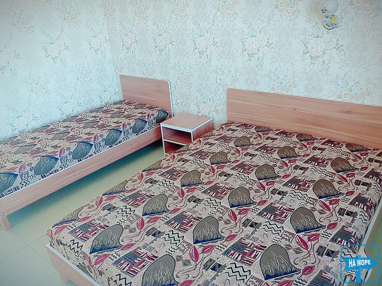 До послуг відпочиваючих надається 15 комфортабельних просторих 3-х та 4-х місцевих номерів з усіма зручностями, які розташовані у двоповерховому капітальному будинку. Можливе розміщення більшої кількості відпочиваючих на додаткових спальних місцях. У кожному номері зручні сучасні меблі, ліжка з ортопедичними матрацами, індивідуальний санвузол (гаряча вода цілодобово), кондиціонер, телевізор, холодильник, балкон, Інтернет WI-FI.