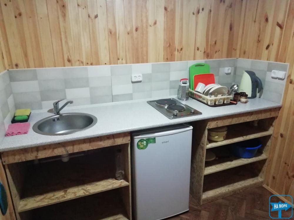 Кожен будиночок для відпустки "У Валентини" оснащений повноцінною кухнею та всім приладдям.