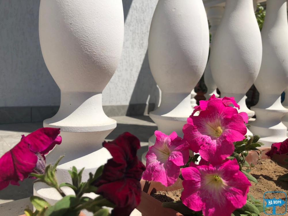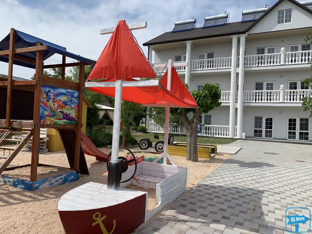 Наша територія є просторим і затишним подвір'ям, закритим від сторонніх з наявністю зон відпочинку для дітей і дорослих. Пляж з наявністю всіх необхідних об'єктів інфраструктури (парасольки, шезлонги, навіси, атракціони та кафе) розташовані зовсім поруч. Неглибоке море з облаштованим берегом чудово підійде для відпочинку з маленькими дітьми.