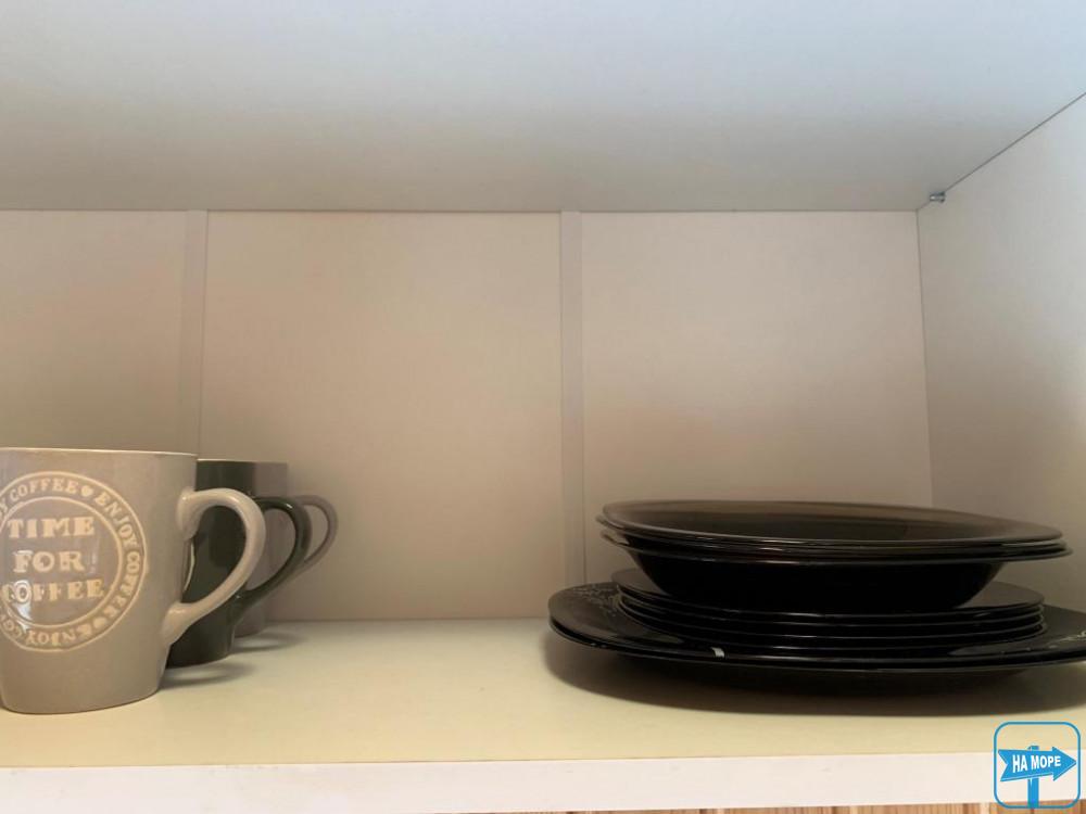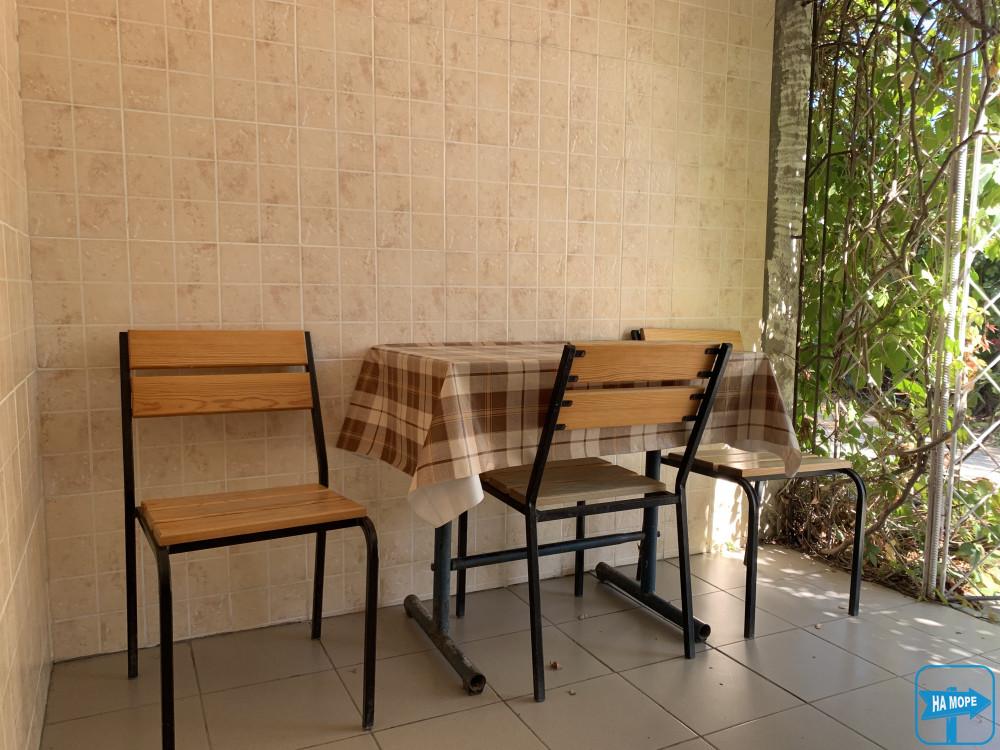Меблі: одинарні ліжка з ортопедичними матрацами з можливістю зрушувати (у деяких номерах є двоспальні ліжка), шафа, кухонні меблі, меблі на терасі (стіл, стільці).