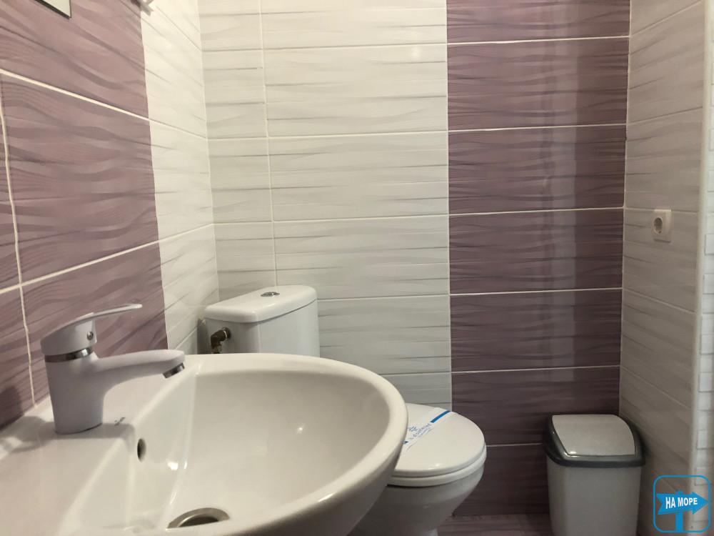 Обладнання: телевізор (супутникове TV), кондиціонер, холодильник, індукційна плита, електрочайник, необхідний кухонний посуд та приладдя. Санвузол: унітаз, душова кабіна, умивальник, гаряча вода.