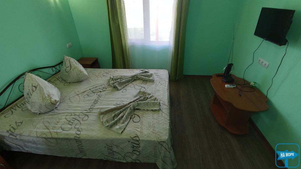 одна кімната 5х4 - дерев'яні одно та два спальні ліжка, супутникове ТБ, WI-FI, кондиціонер, комплект постільної білизни