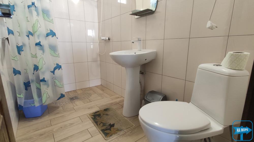 просторий санвузол 2,5х1,5 - туалет, душ, гаряча вода;