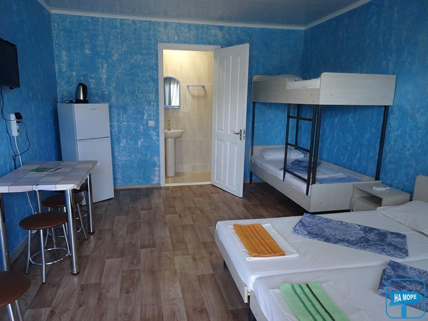 Комфортабельні 2-х, 3-х та 4-х місні номери розташовані у двоповерховому корпусі та мають окремий вхід через веранду. Комплектація номера: сучасні меблі, ліжка, телевізор із супутниковим телебаченням, холодильник, кондиціонер. Санвузол з цілодобовою подачею гарячої води (душ, туалет, умивальник).
