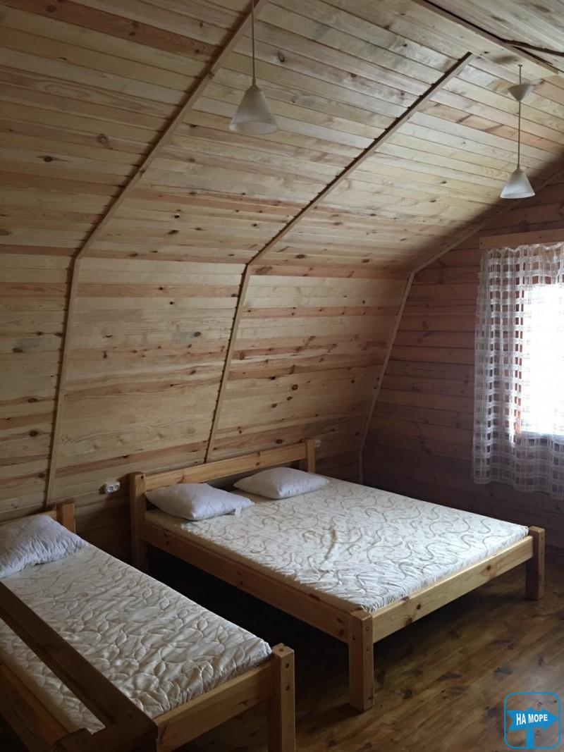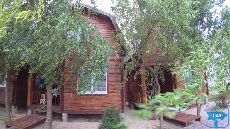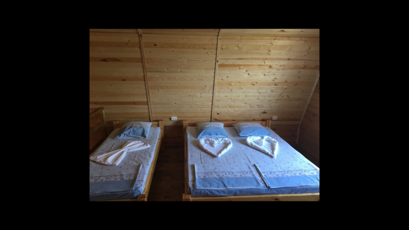 Пропонуємо відпочити в затишних дерев'яних котеджах: чотири одноповерхові, два двоповерхові, десять номерів у двоповерховому дерев'яному корпусі, кухня, дитячий майданчик, автостоянка, мангал, WiFi.