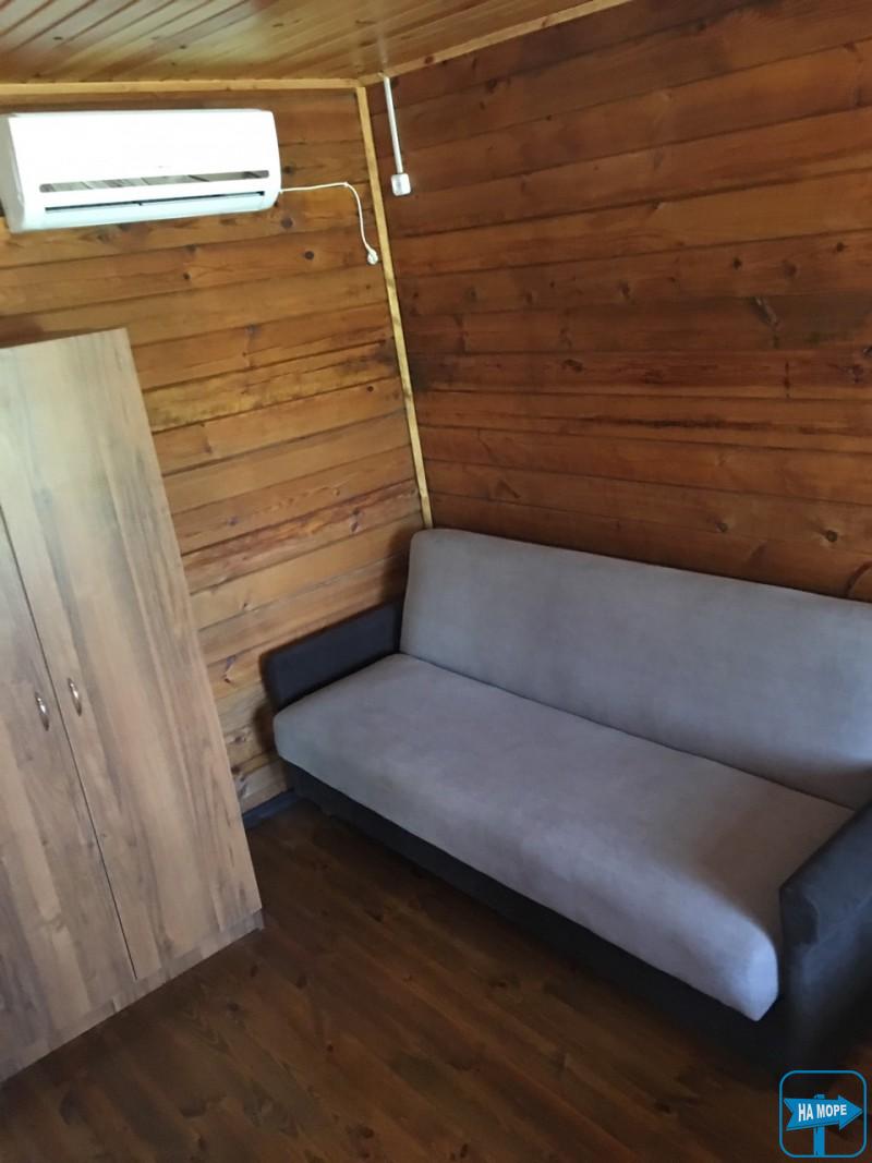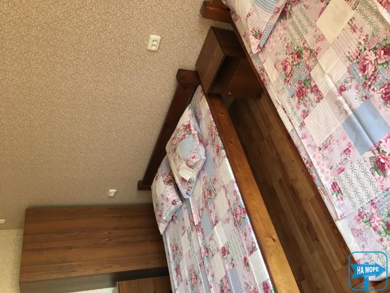 (кондиціонер, холодильник, телевізор, санвузол, чайник, двоспальне ліжко, односпальне ліжко, диван, шафа для одягу, стіл, стільці, постільна білизна, рушники)