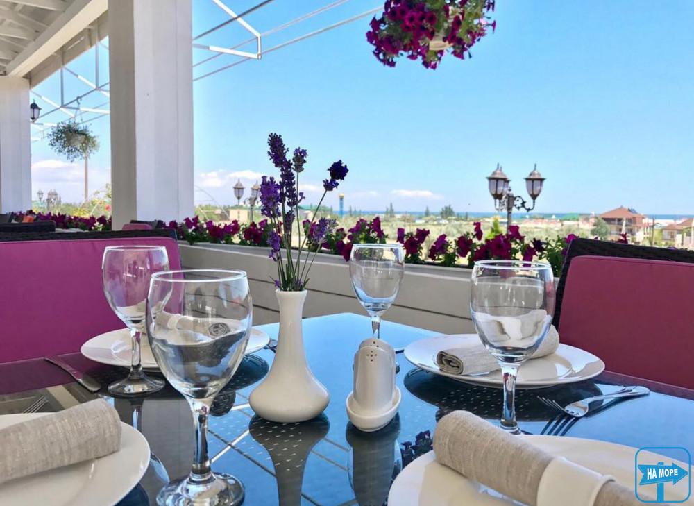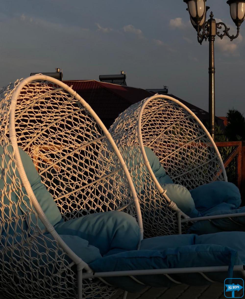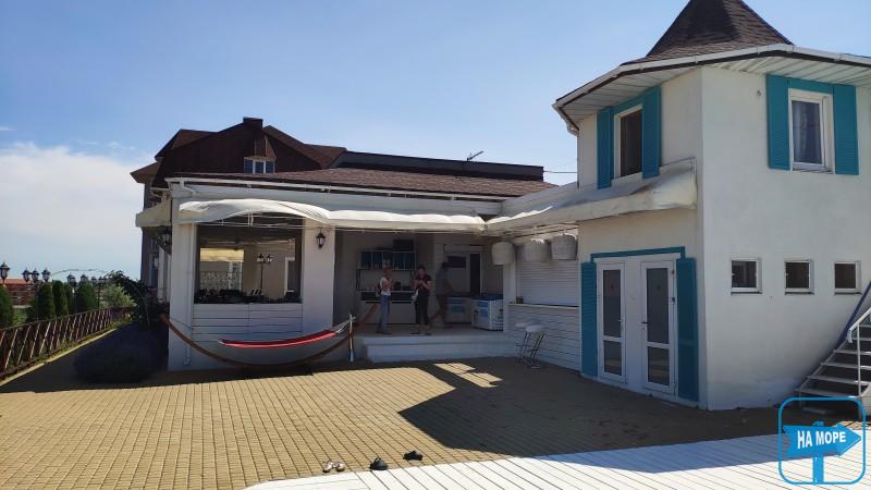 Обід та вечеря – оплачуються окремо, попереднє замовлення за меню – у наявності рибні та м'ясні страви. Для прийому їжі до послуг гостей тераса з мальовничим краєвидом на Азовське море та околиці.