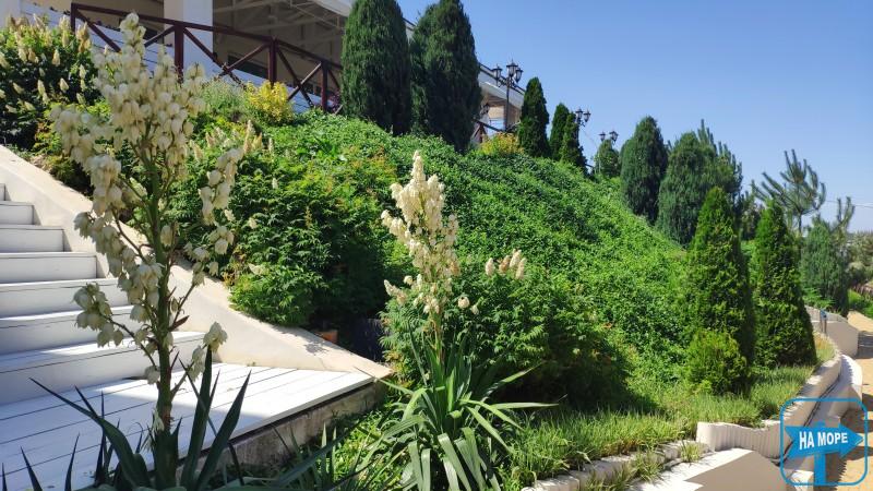 Територія GREEN HILL знаходиться на схилі з ландшафтним дизайном та брукованими стежками для прогулянок. Висаджено сосни та ялівець різних сортів для Вашого оздоровлення.
