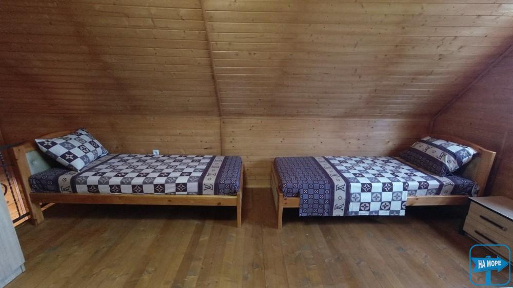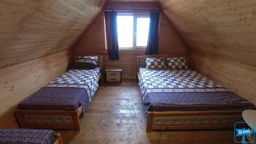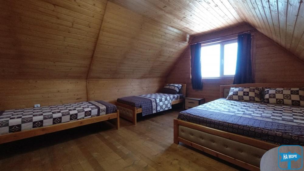 На другому поверсі кімната з однією двоспальною та двома односпальними ліжками, шафа.