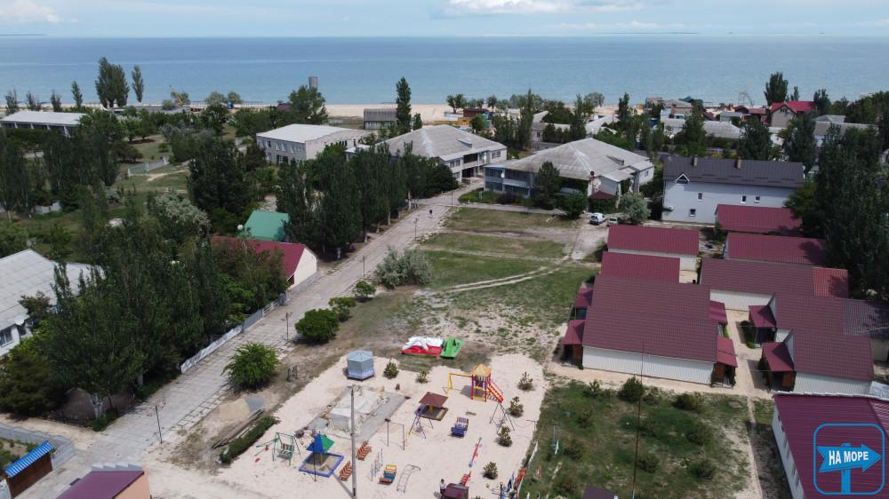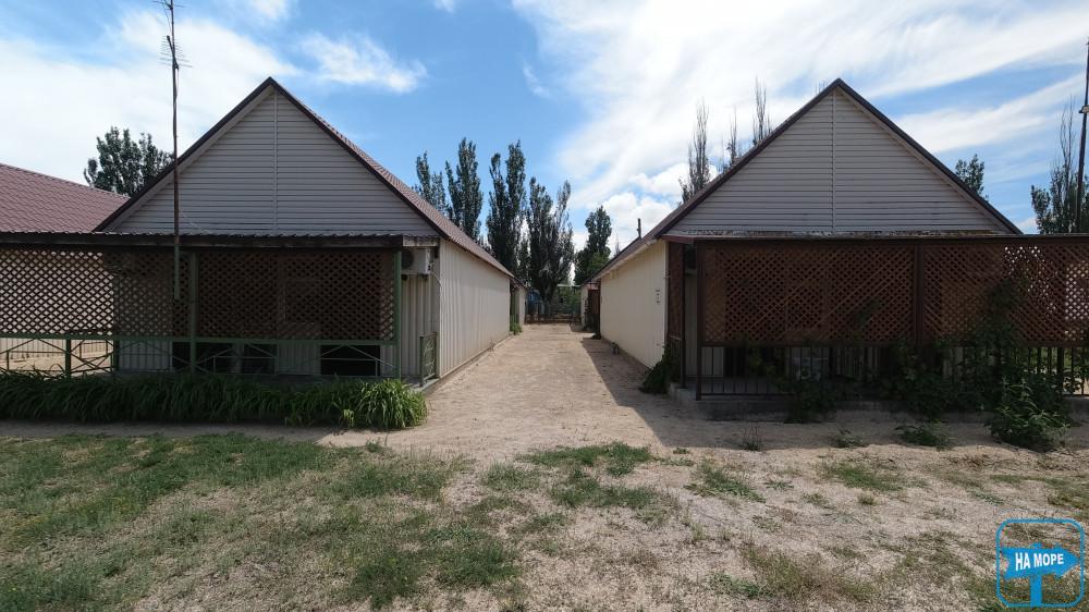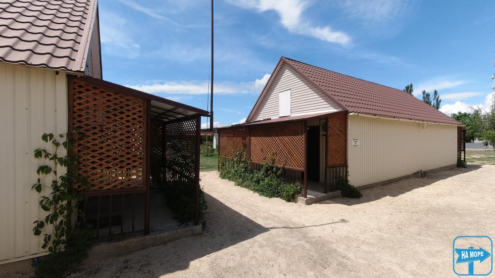 За 100 метрів від бази розташований упорядкований піщаний пляж, обладнаний усім необхідним: туалет, душ, лежаки, парасольки, навіс.