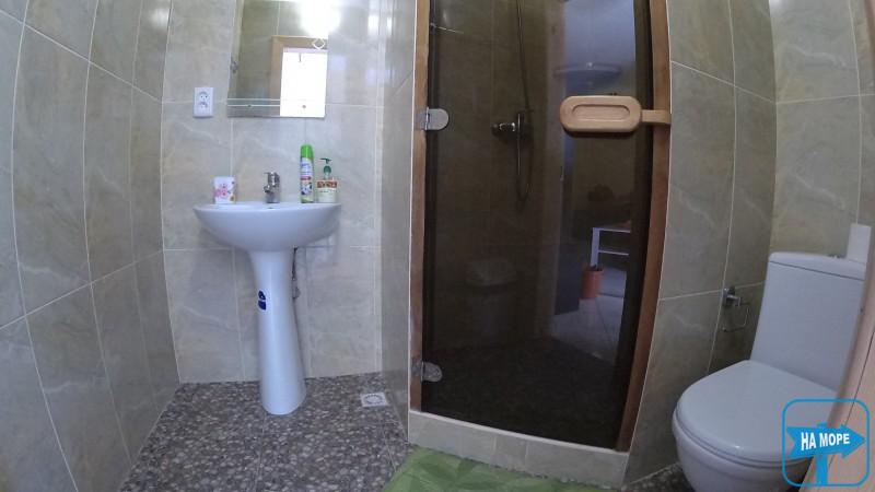 Душ (плюс літній душ), туалет, кухня (15-10 метрів) на території пансіонату.