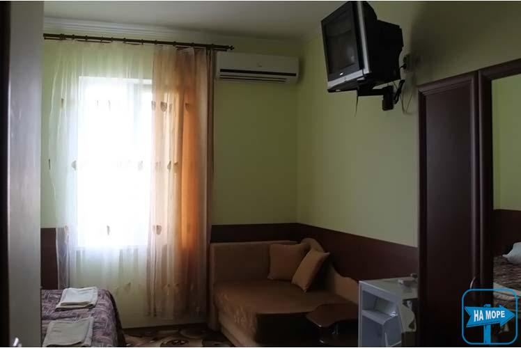 У кожному номері є санвузол (душ, туалет), холодильник, телевізор, кондиціонер. Широкосмуговий інтернет WI-FI по всій території пансіонату. Гаряча та холодна вода цілодобово. Нові меблі - шафи, ліжка, тумбочки і т.д. Додатково надаються послуги прання, прасування.