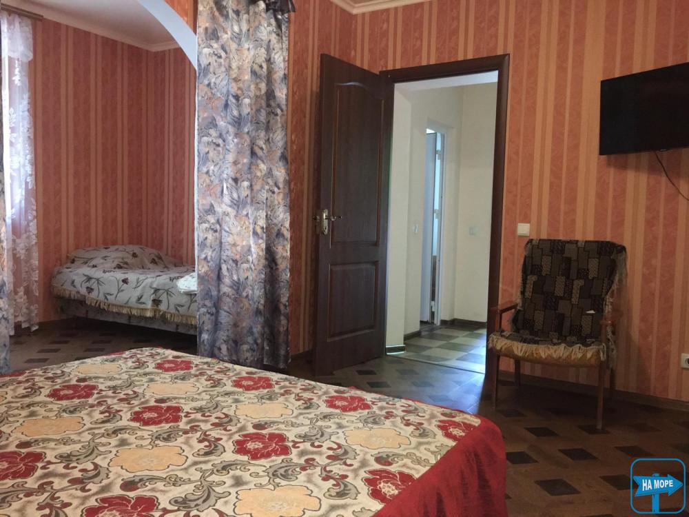 Розрахований на 4-5 осіб з індивідуальною верандою та власною кухнею. Складається із двох кімнат (суміжних). У номері санвузол: душ, унітаз, умивальник (з постійною подачею гарячої та холодної води). Своя кухня з кухонним посудом і з усім необхідним приладдям. У номері: двоспальне ліжко, двоспальний диван та одинарний диван, холодильник, кондиціонер, супутникове TV, шафа, обідній стіл зі стільцями.