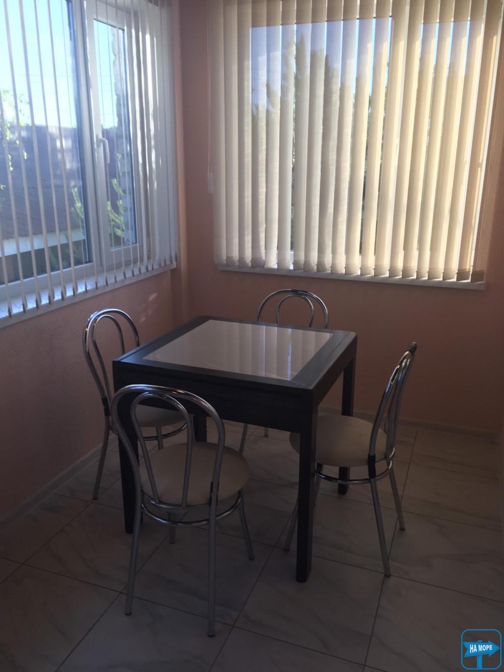 Розрахований на 4-х осіб із власною кухнею та своєю верандою. У номері санвузол: душ, унітаз, умивальник (з постійною подачею гарячої та холодної води). Своя кухня з кухонним посудом і з усім необхідним приладдям. У номері: двоспальне ліжко та двоспальний диван (двоярусне ліжко), холодильник, кондиціонер, супутникове TV, шафа, обідній стіл зі стільцями.