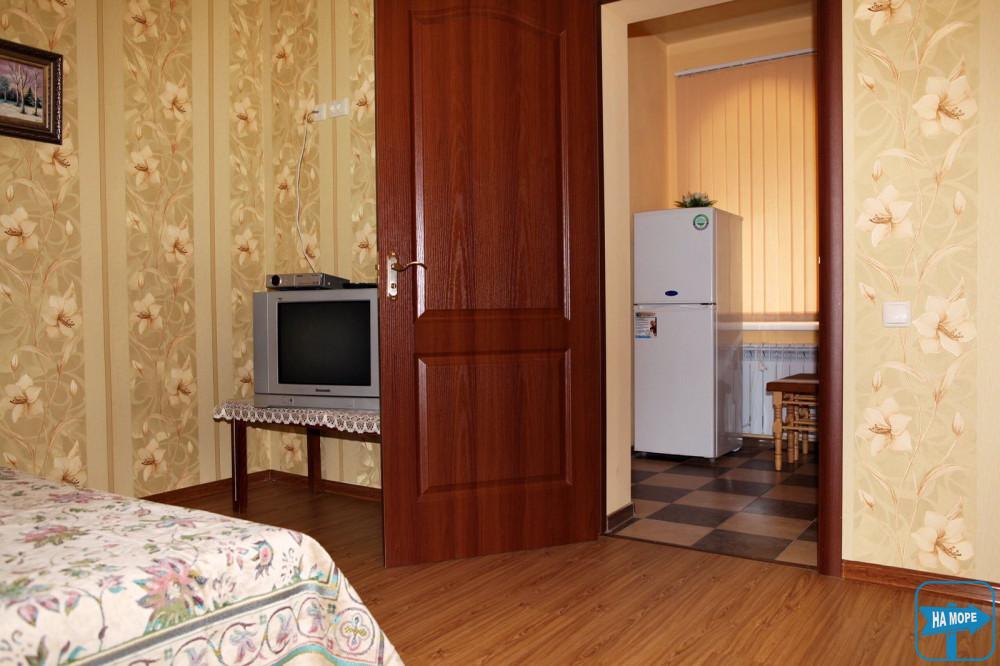 Розрахований на 4-х осіб із власною кухнею. У номері санвузол: душ, унітаз, умивальник (з постійною подачею гарячої та холодної води). Своя кухня з кухонним посудом і всім необхідним приладдям. Сучасні м'які меблі: двоспальне ліжко з ортопедичним матрацом і двоспальним диваном (двоярусне ліжко), холодильник, кондиціонер, плазмовий телевізор, шафа, обідній стіл зі стільцями.