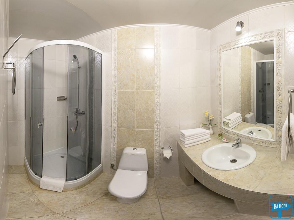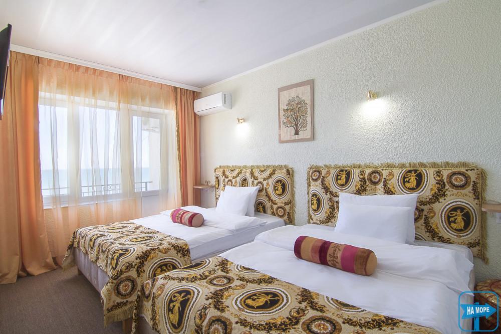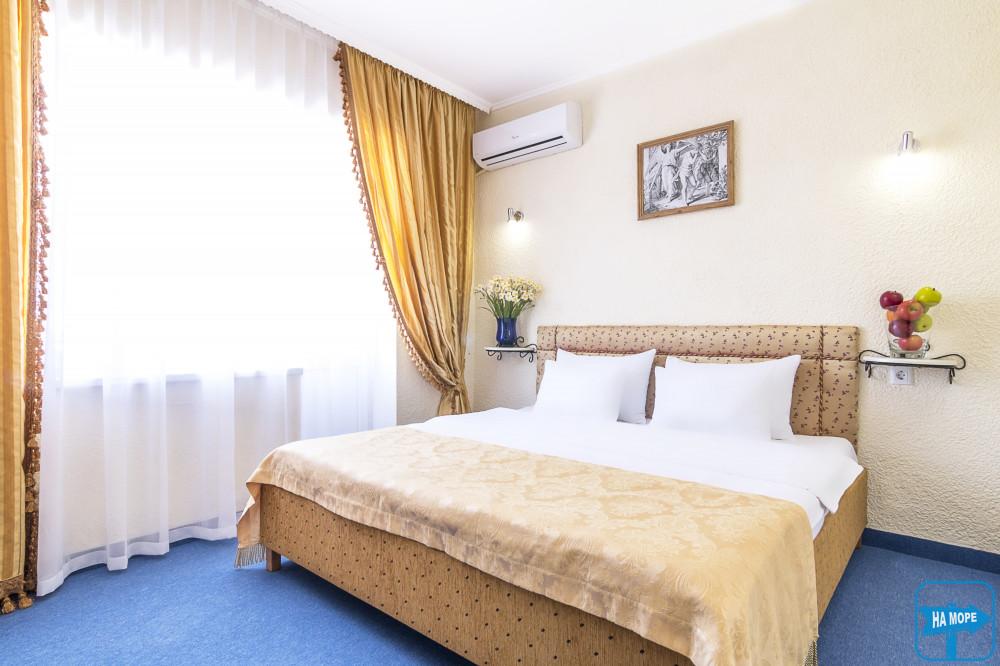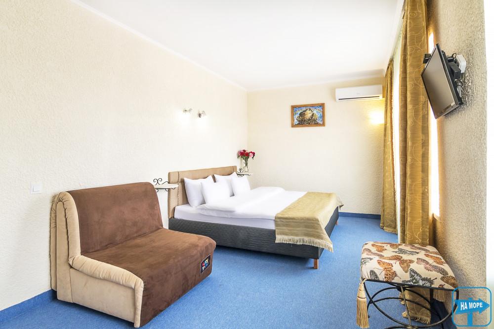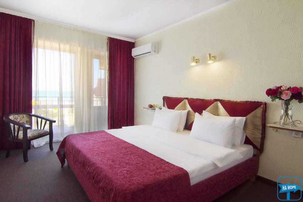 Однокімнатний комфортабельний номер з балконом та видом на море, площею 14 кв.м. У номерах є одне широке ліжко (категорії «double»). Цей номер ідеально підходить для одномісного або двомісного розміщення. Санвузол обладнаний душовою кабіною. Кількість номерів категорії «SV Стандарт» – 30.