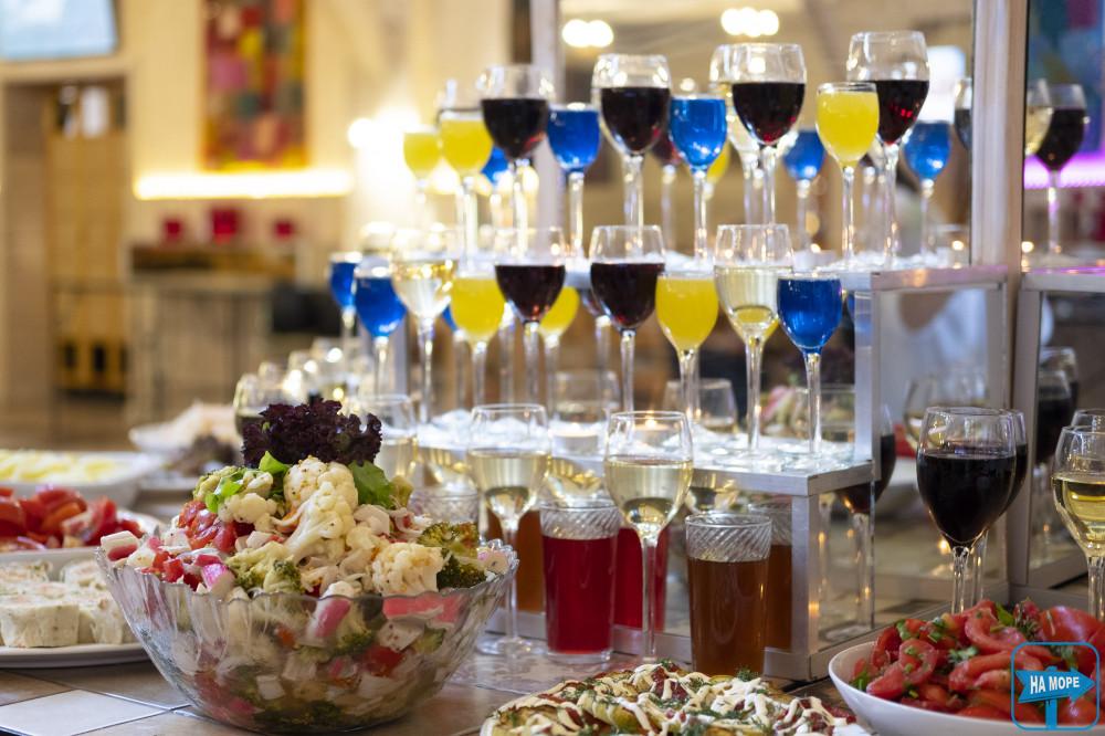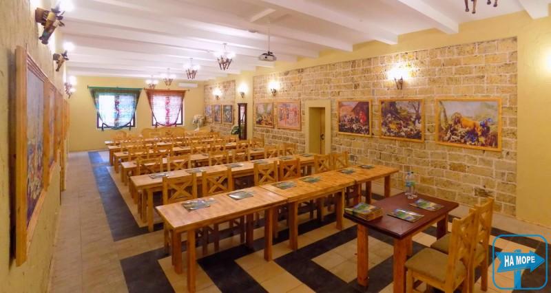 Ми пропонуємо гостям завтраки, обіди та вечірки за системою «шведський стіл» або меню ресторану, де представлені традиційні страви української та приморської кухонь, а також оригінальні страви від нашого шеф-повара.