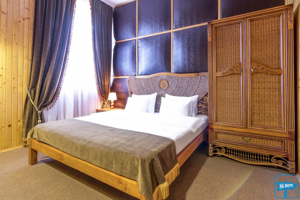 Двокімнатний комфортабельний номер із балконом площею 24 – 28 кв.м. В одній кімнаті широке двоспальне ліжко або два роздільні шириною 120 см. В іншій диван-розкладний або софа. Цей номер ідеально підходить для двох або тримісного розміщення. Санвузол обладнаний душовою кабіною чи ванною. Кількість номерів категорії «Люкс» – 13.