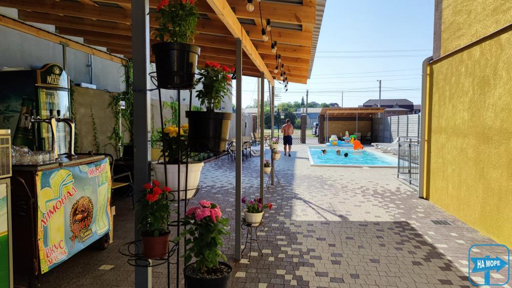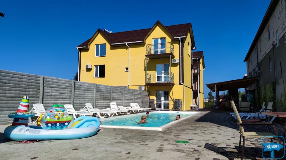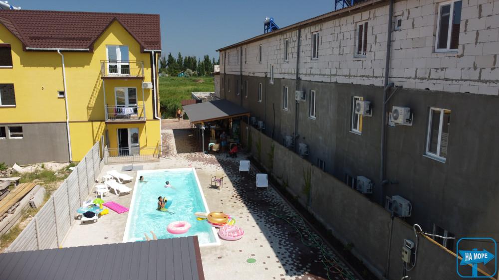 Ми розташовані на першій береговій лінії Азовського моря. Територія доглянута та озеленена. На території є басейн з підігрівом, шезлонгами, зона з альтанками та мангалами.