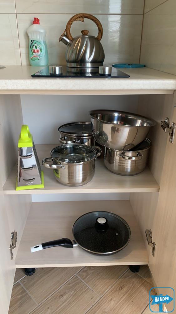 Всі номери обладнані кухнею - студією з холодильником, мікрохвильовою плитою та всім необхідним посудом для приготування їжі. Також в кожному номері є кондиціонер та телевізор.