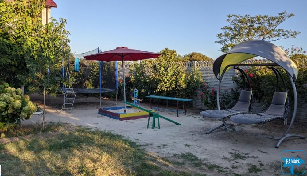 Море знаходиться всього в 5-ти хвилинах ходьби, берег пологий, черепашка дрібна, прийнятна глибина саме для дітей.