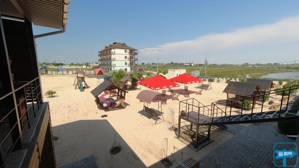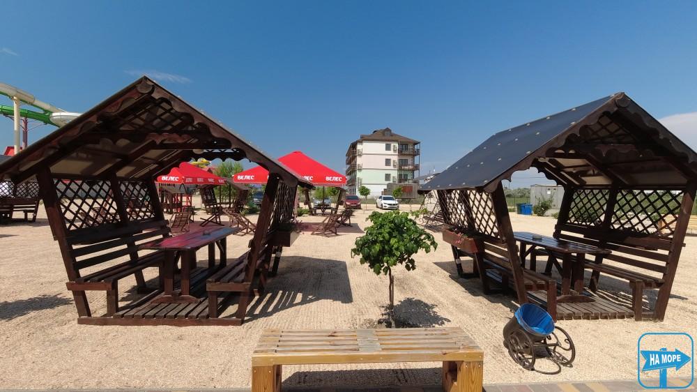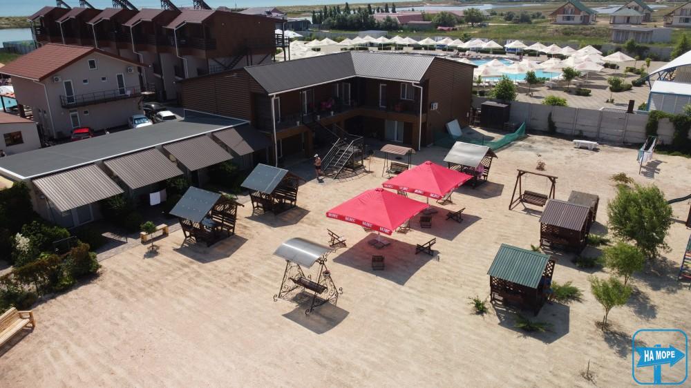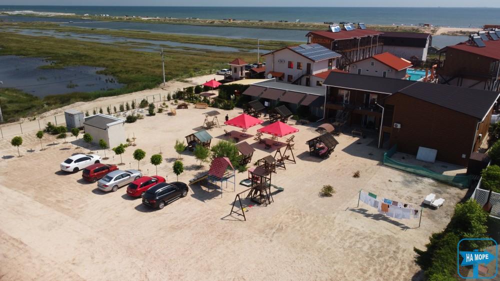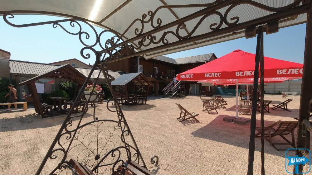 База відпочинку «Велес» розташована на Арабатській Стрілці, село Генічна Гірка за 100 метрів від берега моря. Територія бази, що охороняється, становить 0,35 га. Пляж піщано-черепашковий, чистий, море з пологим дном, що дозволяє купатися навіть маленьким дітям.