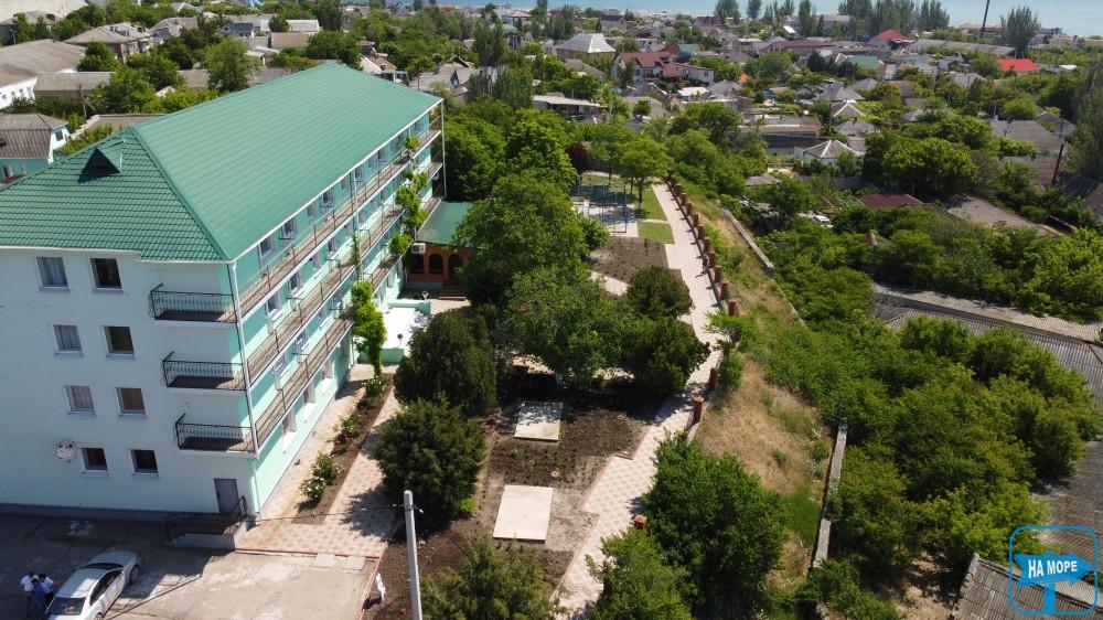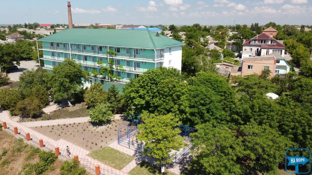 Тризірковий готель розташований за 500м від центру міста, недалеко від ринку та берега Азовського моря. Розташування дозволяє відпочити без зайвого шуму та метушні, оскільки поряд немає дискотек і трас.