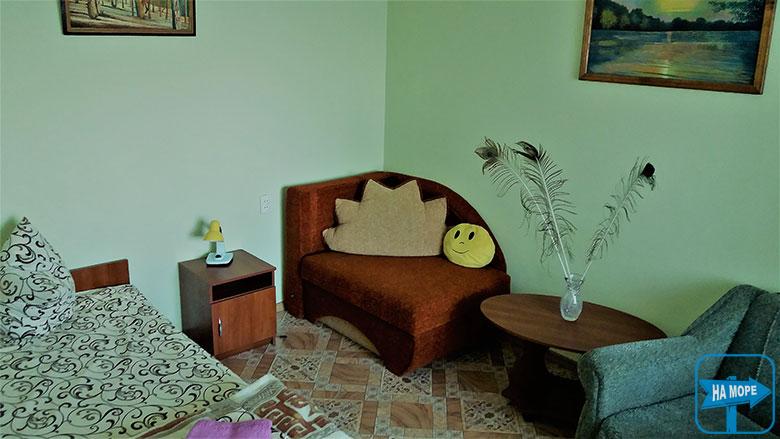 • Однокімнатний номер «Люкс» з кухнею – передпокою на 2 та 1 поверхах. Другий поверх – вид на море.