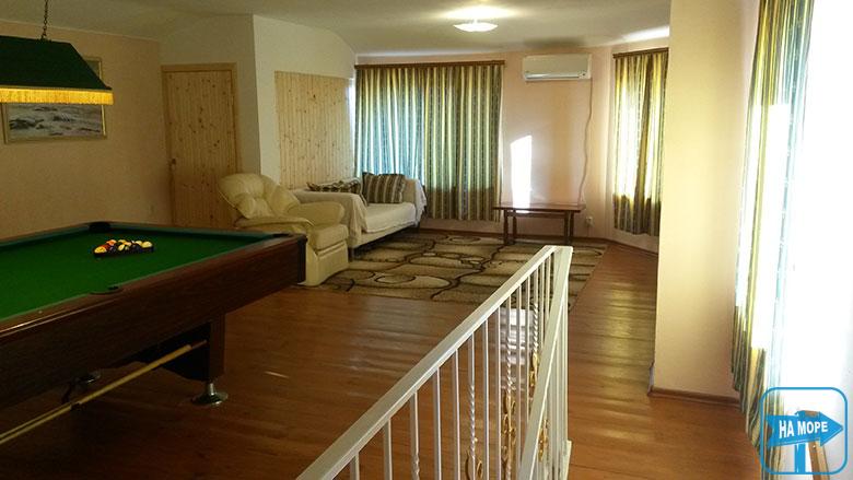 • Весь третій поверх займає ігрова кімната/зал. У ній знаходиться більярдний стіл (пул), диван, крісло, журнальний столик, супутникове телебачення, відео/DVD програвач та караоке.