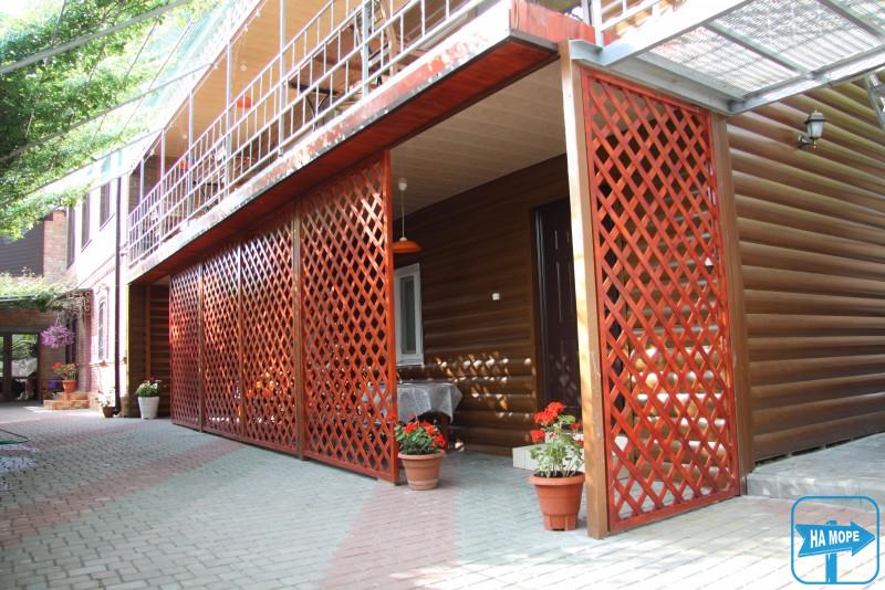 Пансіонат має впорядковану тінисту територію, повністю під навісом виноградної.