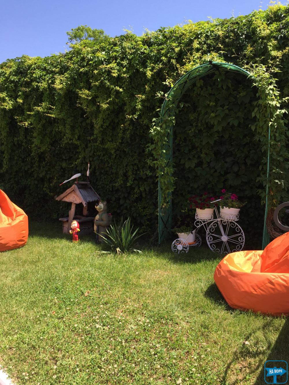 Територія комплексу має відкритий басейн, наповнений мінеральною водою, з наявністю штучної хвилі, затишні зони для відпочинку, можливості для гри в настільний теніс та футбол. Встановлено батут та дитячий ігровий комплекс.