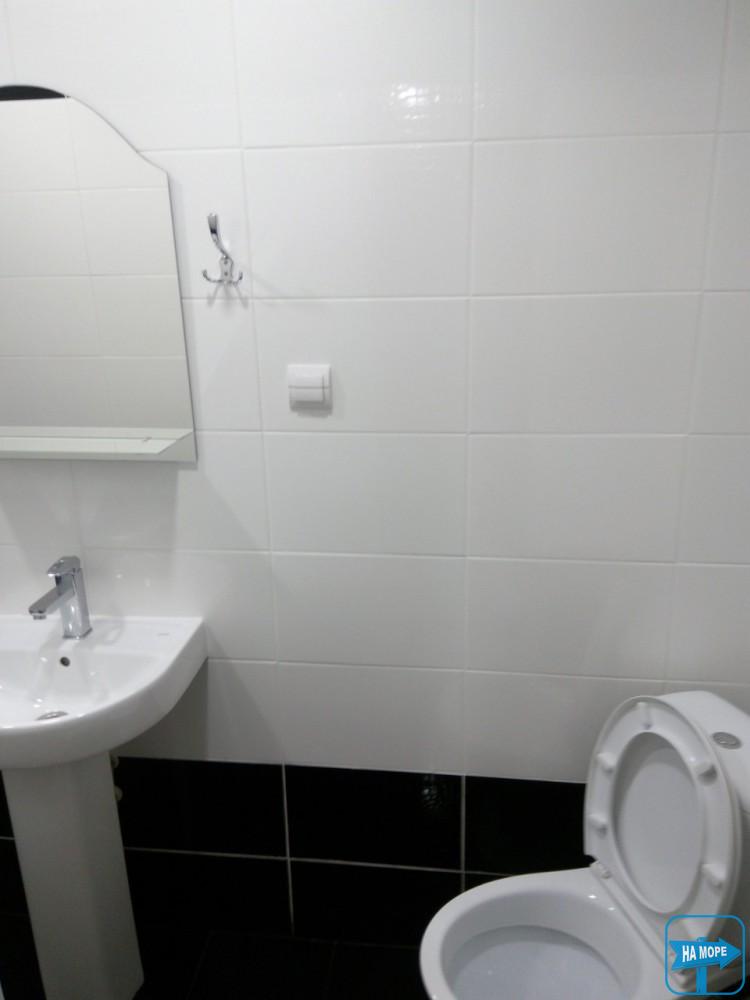 У душових гаряча вода, туалети пристойні. У номері нові меблі, стіни оздоблені дерев'яною вагонкою, на підлозі керамічна плитка.