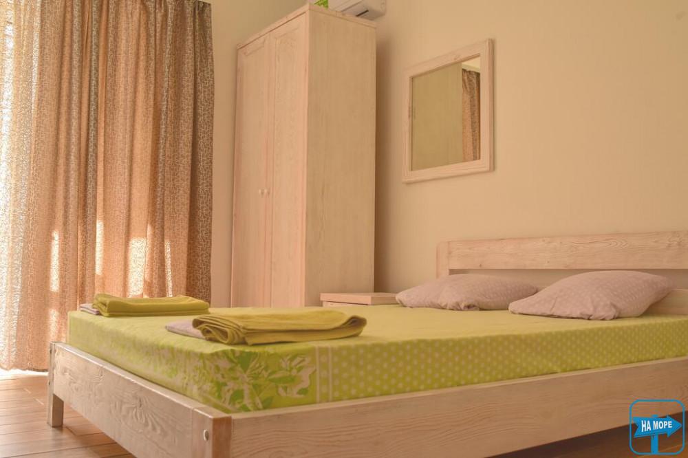 Номер обладнаний меблями, двоспальним або двома односпальними ліжками, холодильником, кондиціонером, телевізором із супутниковим TV, балконом, санвузлом (туалет та душ). Цілодобова подача води