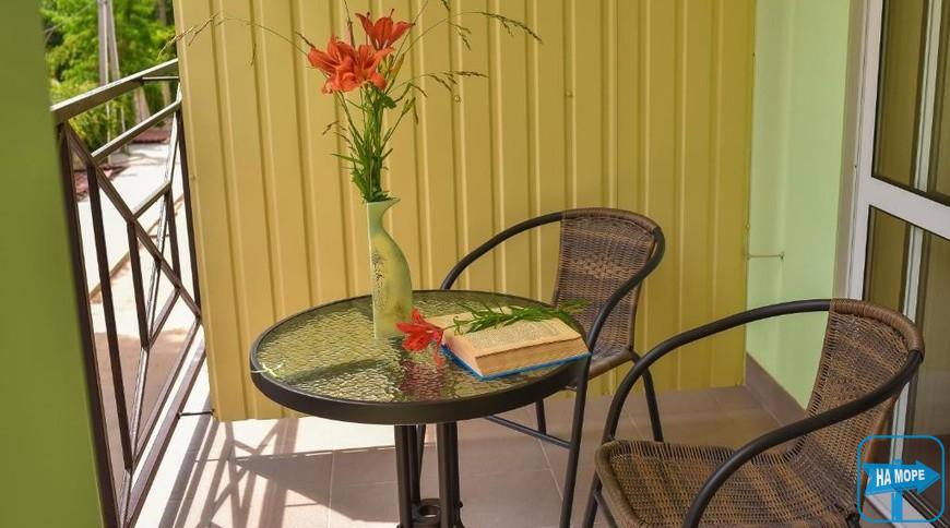 До послуг відпочиваючих 2-х, 3-х місні та 2-х кімнатні номери для сім'ї з 4-5 осіб. Кожен номер укомплектований необхідними меблями, телевізором (супутникове TV), холодильником, кондиціонером, балконом, санвузлом (туалет та душ). Цілодобова подача гарячої та холодної води.