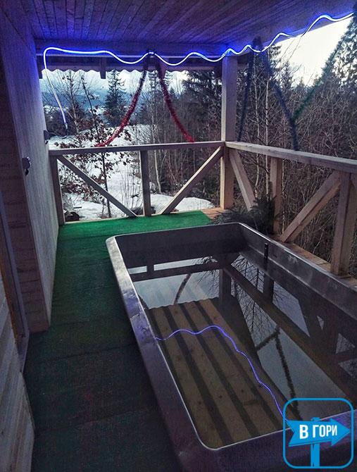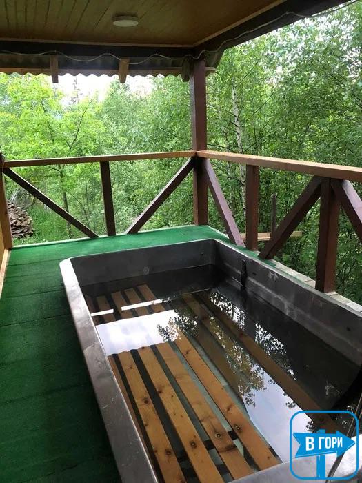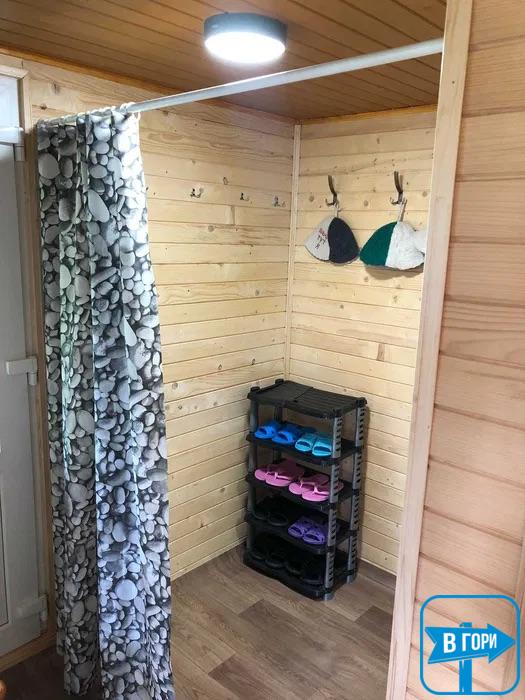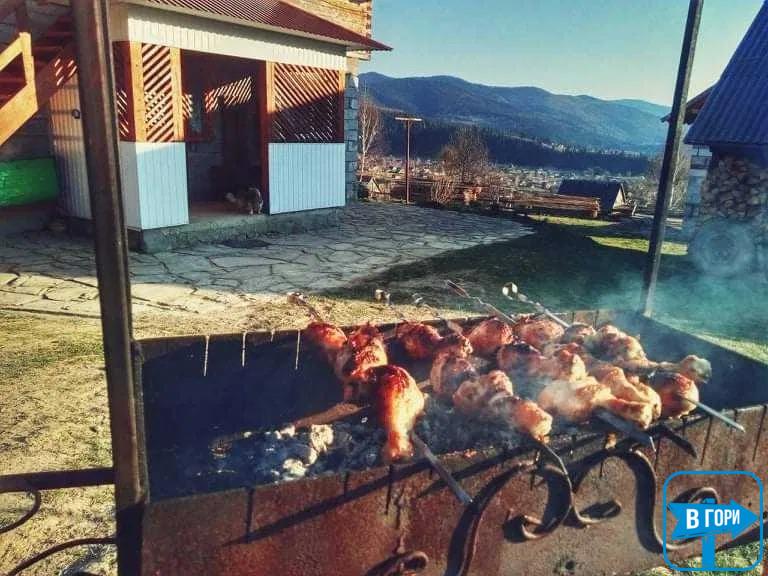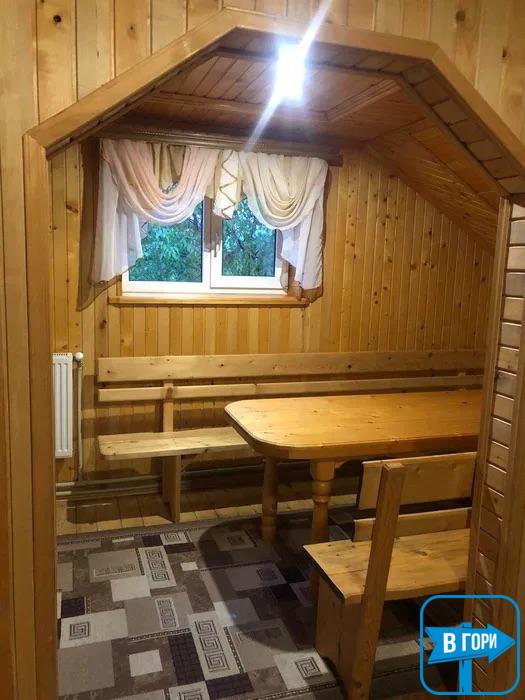 На другому поверсі (окремий вхід з двору) - кухня-їдальня (електрична плита, холодильник, мийка, посуд, стіл з лавами);