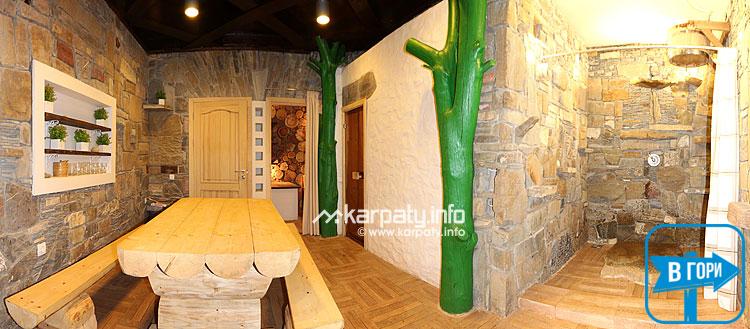 - Сауна на дровах із кімнатою відпочинку — 400 грн на годину. Мінімальне замовлення – 2 години.