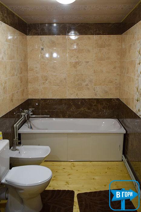 На другому поверсі розташовані три двомісні номери, кожен з яких обладнаний зручним двоспальним ліжком, де ви зможете насолодитися спокоєм і зручністю після насиченого дня. У кожному номері також є санвузол з ванною, туалетом, біде та умивальником.