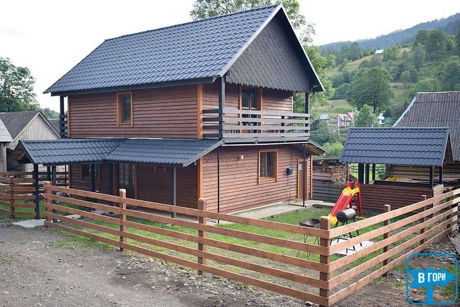 На території садиби розташований двоповерховий котедж, альтанка, мангал, гойдалка та невеликий ставок з фореллю.