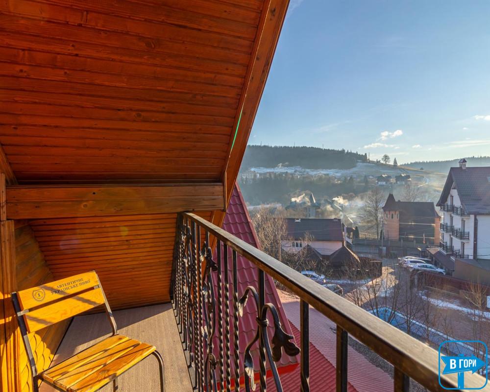 однокімнатний, двомісний номер, загальна площа – 20-25 м. кв. - двоспальне ліжко, супутникове ТБ. Санвузол (душова кабіна, унітаз, умивальник), кількість рушників – 2 на особу. Балкон з видом на гори.
