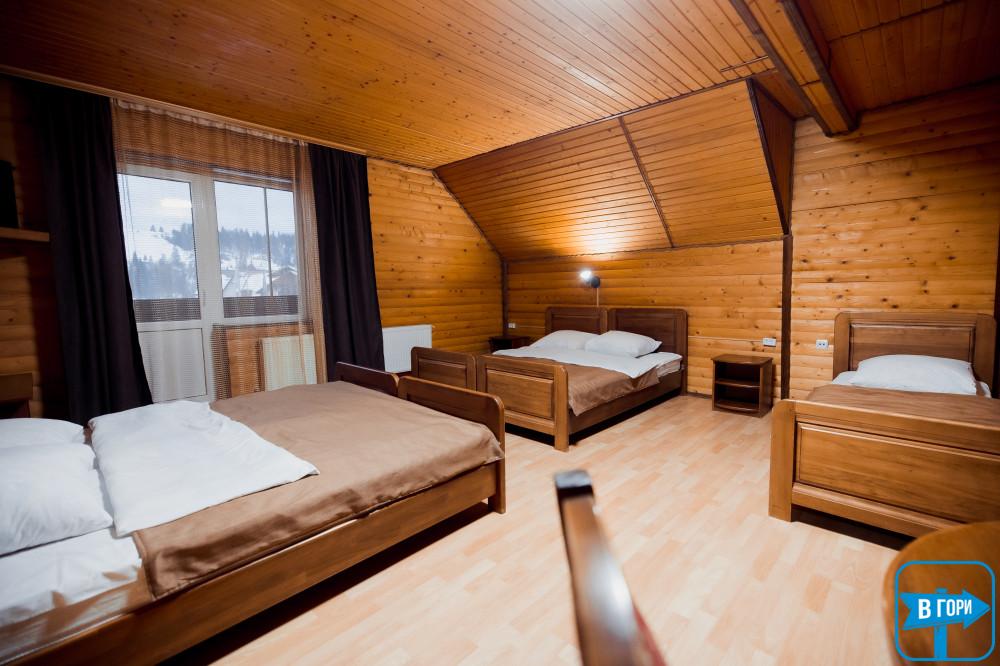 однокімнатний, чотиримісний номер, загальна площа – 40 м. кв. - 2 двоспальні ліжка, диван, супутникове ТБ. Санвузол (душова кабіна, унітаз, умивальник), кількість рушників – 2 на особу. Балкон з видом на гори.