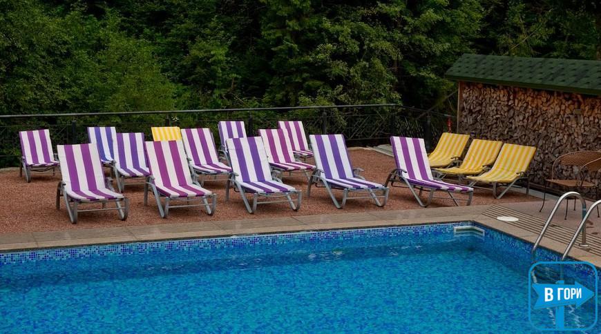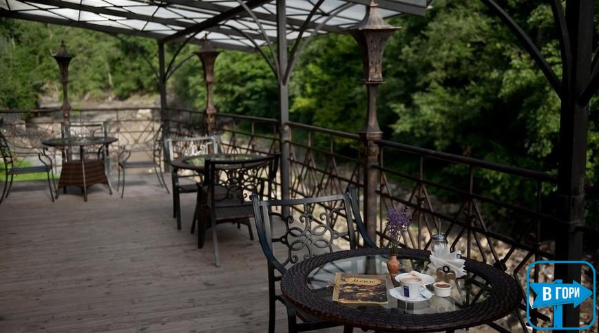У традиційно оформленому ресторані з каміном та терасою подають страви європейської та грузинської кухні. Також до послуг гостей кіно-бар, де можна замовити напій та переглянути улюблені фільми.