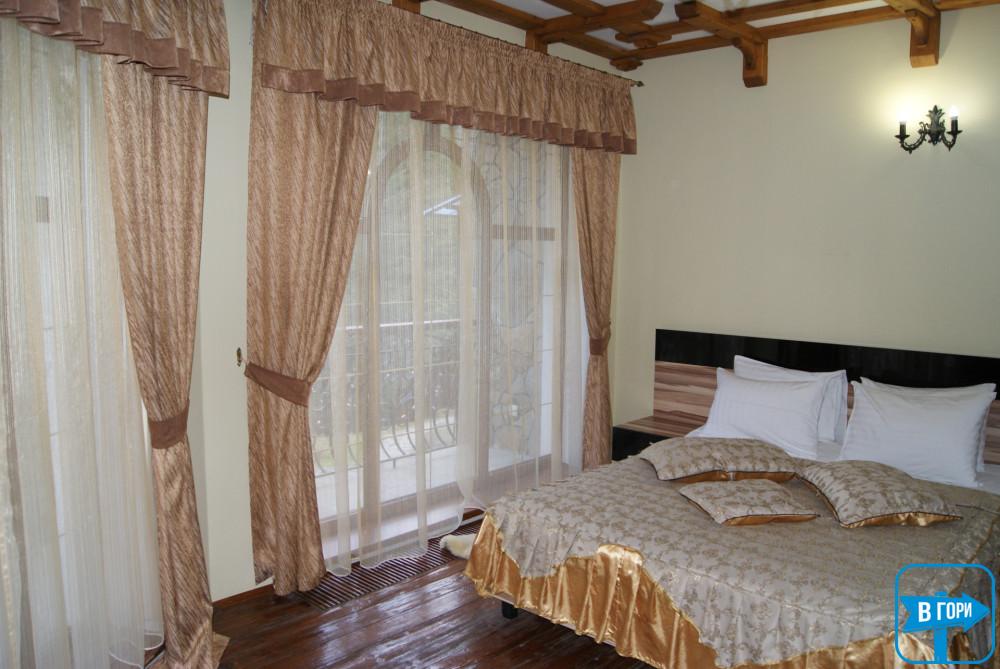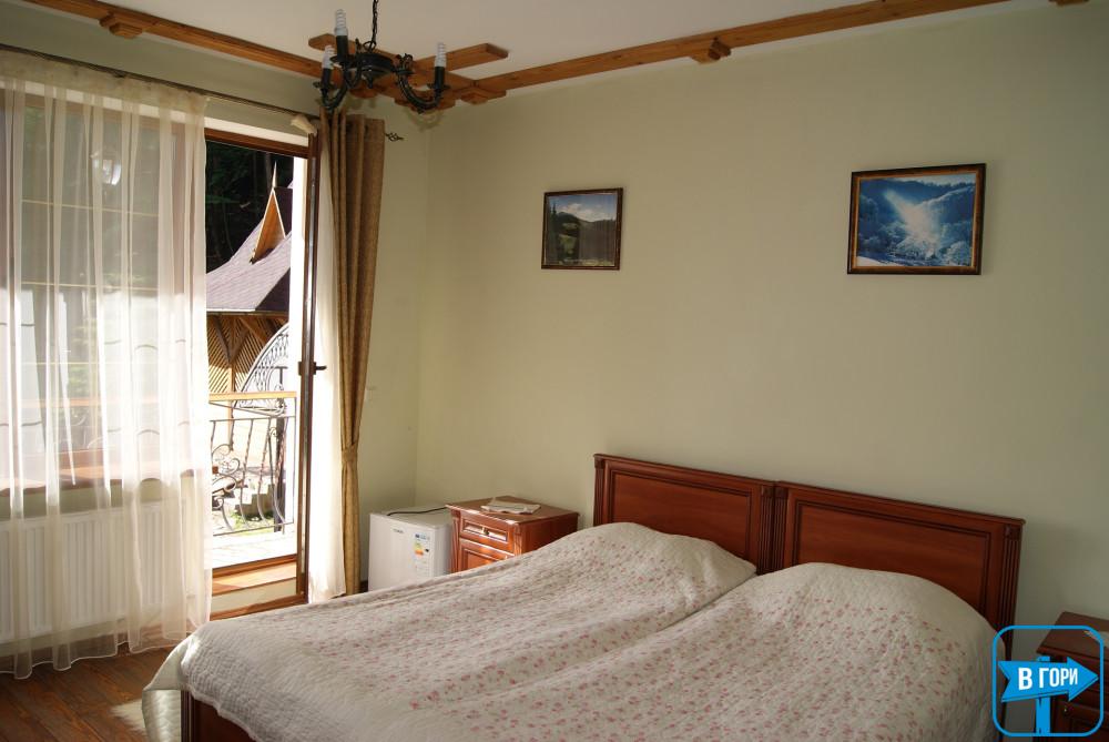 Між багаторічних ялинок, ніби створені самою природою для відпочинку. З вікон садиби відкривається панорамний краєвид на Карпатські гори та лісові пейзажі.