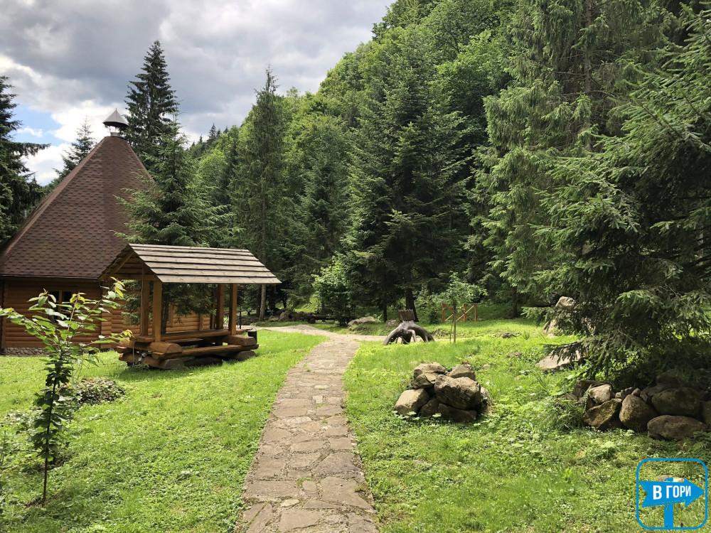 Комплекс розташований між багаторічними ялинками, ніби створений самою природою для відпочинку.